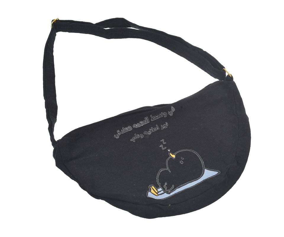 OX - OX W-56 Comic Phrases Fabric Fashion Printed Waist Bag with Zipper for Women, Black