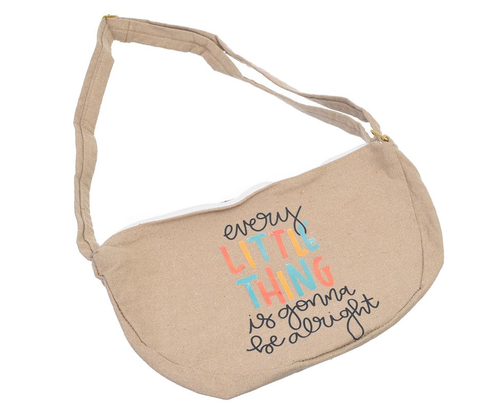 OX - OX W-70 Comic Phrases Fabric Fashion Printed Waist Bag with Zipper for Women, Beige