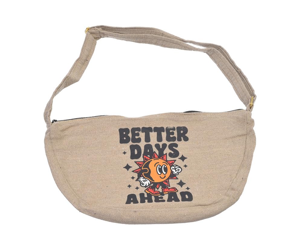 OX - OX W-97 Comic Phrases Fabric Fashion Printed Waist Bag with Zipper for Women, Beige