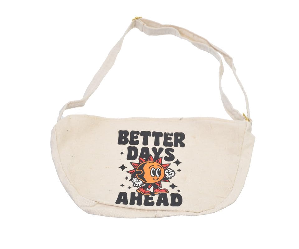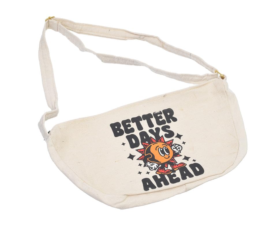 OX - OX W-97 Comic Phrases Fabric Fashion Printed Waist Bag with Zipper for Women, Off-White