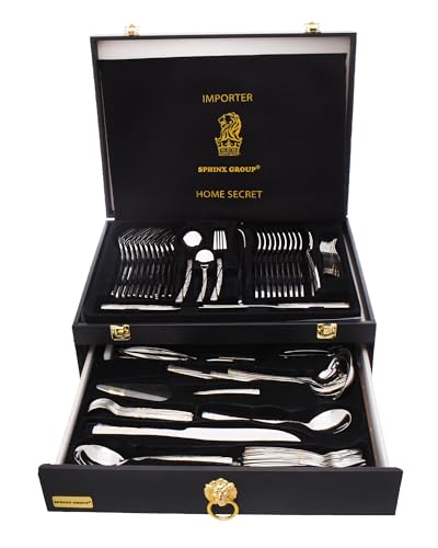 Oxford - طقم ملاعق موديل 17GLB مكون من 86 قطعة مع شنطة باللون الأسود من اوكسفورد، سمك 4.5 ملم، فضي