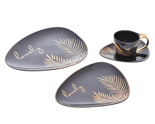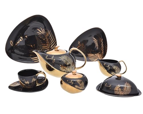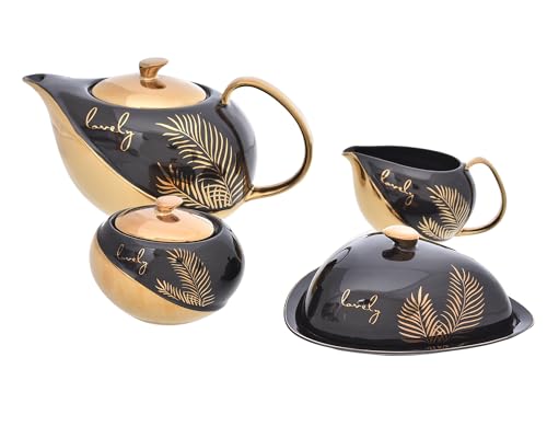 - Crafted from fine porcelain, the set includes teacups, saucers, and a teapot, each piece showcasing a delicate and refined aesthetic.
