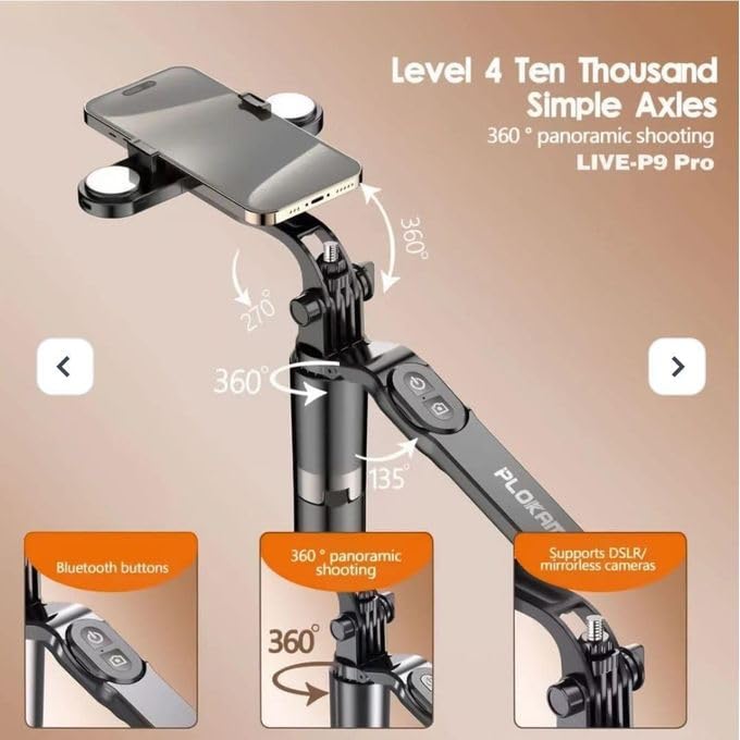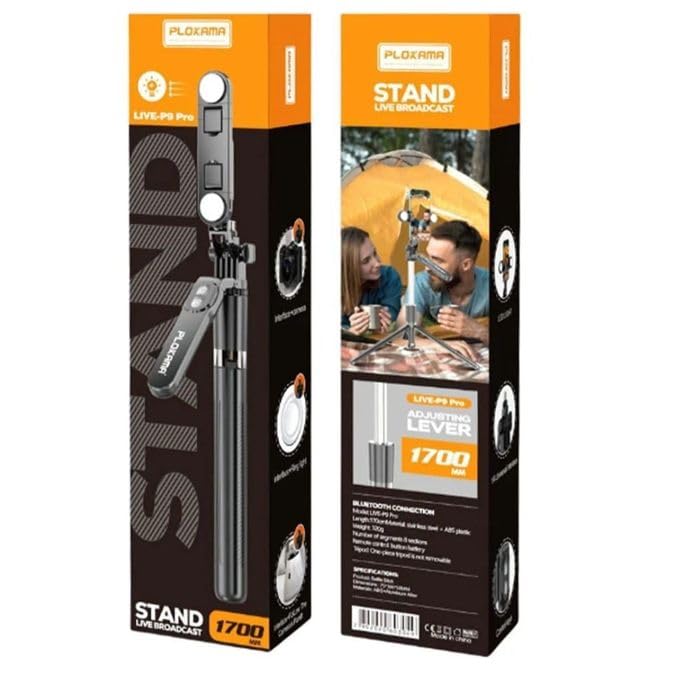 Generic - P9 Pro Bluetooth Selfie Stick Adjustable Rotation Angle 170cm - Remote Control - Black