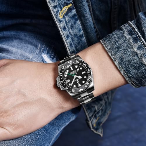SUZAKU - Pagani Design Men's GMT Automatic Mechanical Watch 100m/bar Waterproof Ceramic Bezel Sapphire Glass Luminous Hands Watch
