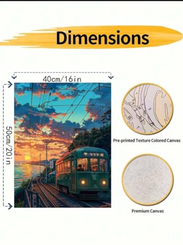Generic - Paint by Numbers Kit, Sunset Tram Scene, 40x50 cm, DIY Canvas Art Set with Brushes and Colours