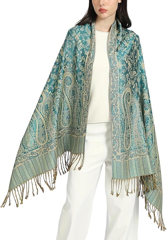 Generic - Paisley Shawl Reversible Pashmina Shawl for Women Soft Silky Woven Scarf Vintage Jacquard Pashmina Scarf with Tassels for Evening Party Wedding