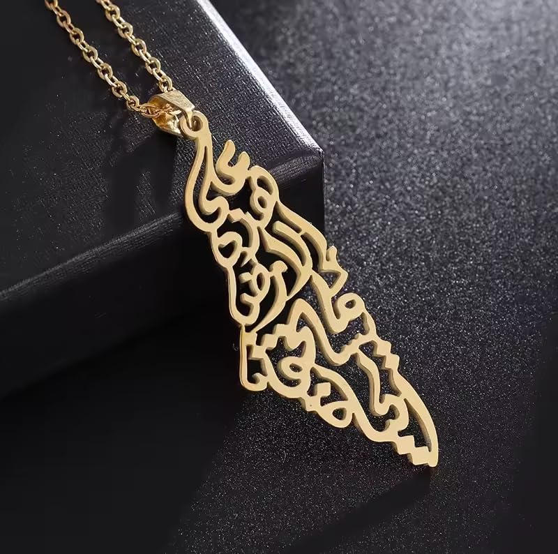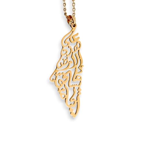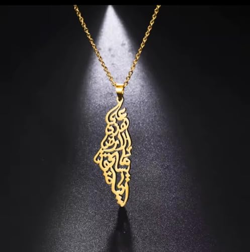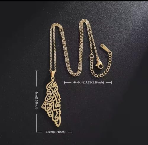 Generic - Palestine Map Necklace Arabic Calligraphy on This Earth Worth Life Stainless Steel Stainless Steel Pendant Necklace for Men Women