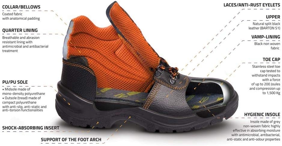 Generic - Panda ALFA S1P Safety Shoes Work Boots, Size 43, Black and Orange