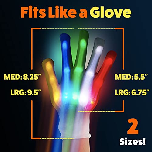 - GLOW GLOVES FOR KIDS: These large white LED gloves measure 8.25” L x 5.5” W and are made with durable nylon fabric for long lasting wearability. Glow bright with these glow in the dark light up gloves for kids ages 6+