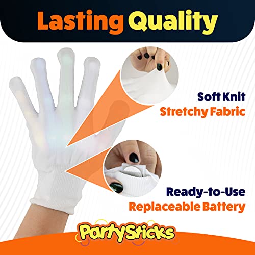 PartySticks - PartySticks LED Skeleton Gloves for Kids - 5 Colors, 6 Flashing Modes, Finger Lights Sensory Toy, Glow in The Dark, Medium, White