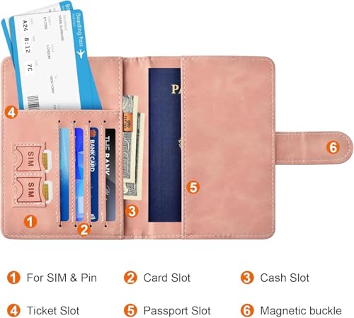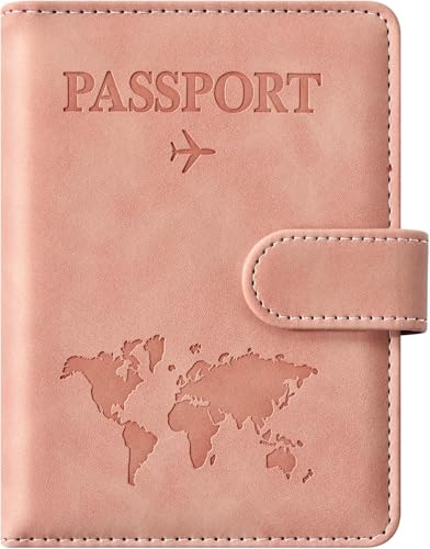 Motevia - Passport Holder Leather Passport Case for Card and Flight Ticket Passport Cover Protective Elastic Strap (Pink)