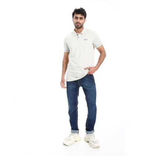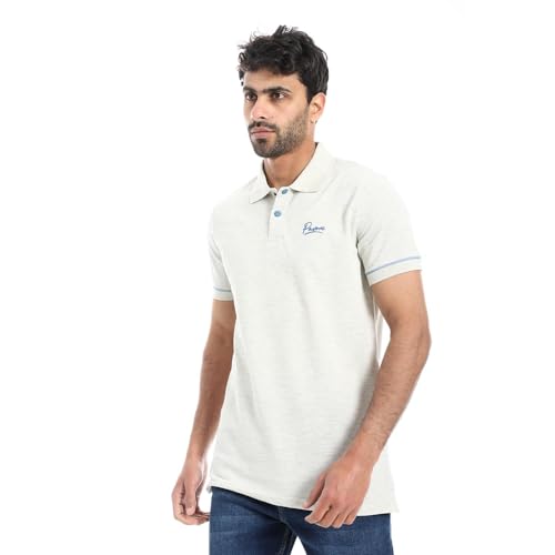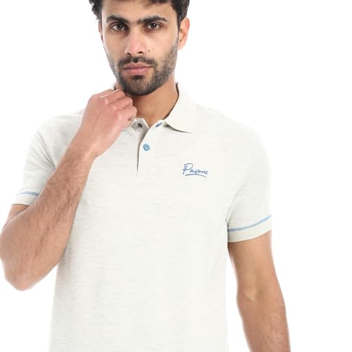 PAVONE men wear - Men Bone Grey Shorts Sleeves Pique Pattern Polo Shirt