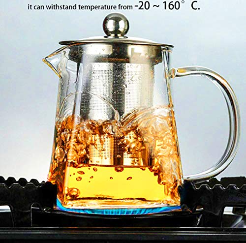 - تساعد أباريق الشاي الزجاجية مع غطاء ومصفاة ذات فتحات دقيقة للغاية على تحضير الشاي بطريقة بسيطة وسريعة. مقبض عازل للحرارة. مع مصفاة قابلة للإزالة، مصنوعة من الستانلس ستيل 304 الآمن غذائيًا، آمنة جدًا وسهلة التنظيف.