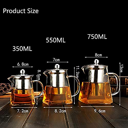 PCduoduo - ابريق شاي زجاجي شفاف من البوروسيليكات مع مصفاة شاي للشاي السائب، مقاوم للحرارة وامن للاستخدام في غسالة الصحون (550 مل/18 اونصة)