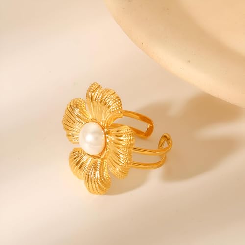 Generic - Pearl Flower Ring - Versatile Adjustable Band with Flower Bouquet, Suitable for Jewelry for Fashion Forward and Party Clothing