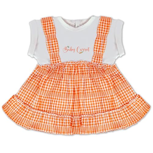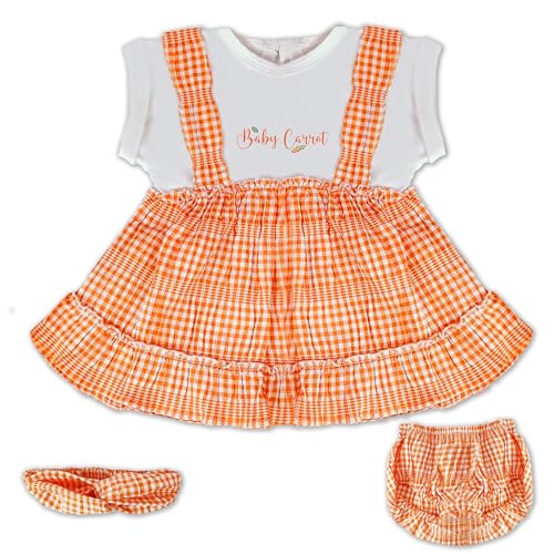 Pengweeny - طقم فستان بيبي بناتي صيفي من بينجويني – 3 قطع (فستان + بانتي + باندانا) – قطن 100% – برتقالي – من 0 الى 12 شهر