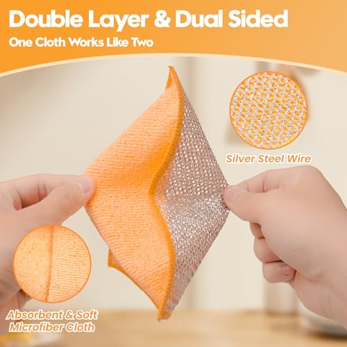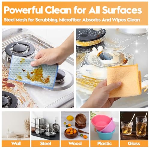 - ناعمة وغير قابلة للخدش: مصنوعة من شبكة فولاذية لطيفة وألياف دقيقة، قماش الأطباق المعدني هذا يمسح البقع بفعالية دون خدش. لطيف على المقالي غير اللاصقة وأواني الطبخ والأحواض وأكثر من ذلك - ترقية مثالية من قماش الصوف الصلب التقليدي والإسفنج مع قطع غسيل الأطباق المصنوعة من الستيل