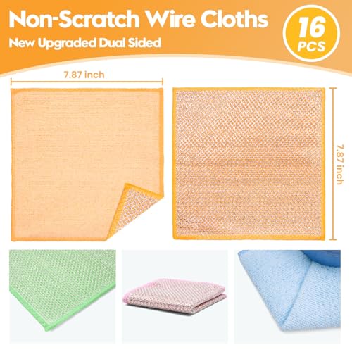 Phafaloop - 16 قطعة من قطع قماش غسيل الاطباق السلكية متعددة الاغراض من فافالوب، قماش غسيل سلكي مطور مزدوج الجوانب غير قابل للخدش، قماش غسيل معدني قابل لاعادة الاستخدام، قماش تنظيف صوف ستيل للمطبخ، اواني الطبخ