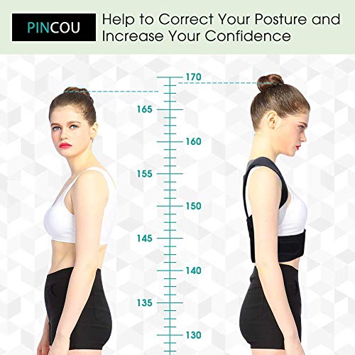PINCOU - Posture Corrector for Women and Men, Full Back Brace Support Neck Pain Relief, Back and Shoulder Orthotic Slouching, Improve Bad Posture Thoracic Kyphosis, Black (S: Waist 30"- 38")