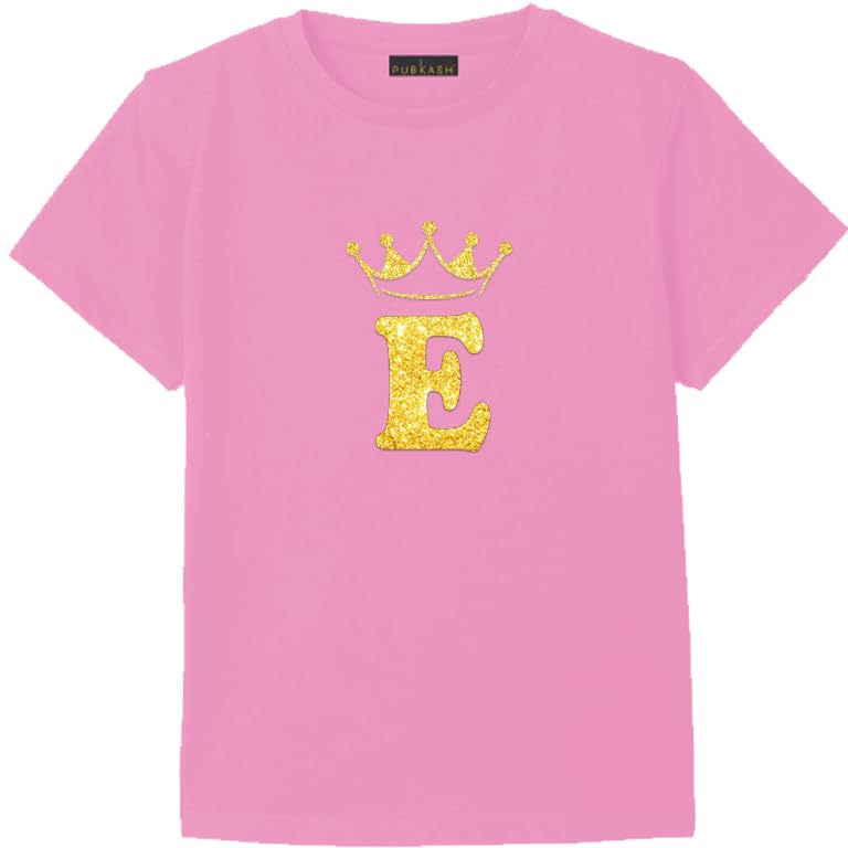 Generic - تيشرت قطن عصري مطبوع بنمط تاج مع حرف E، لون وردي، مقاس سمول S