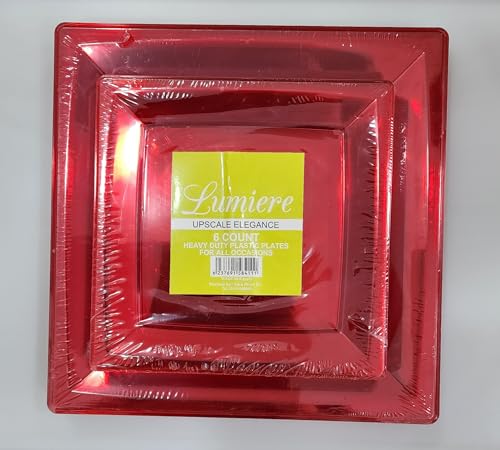 Generic - Plastic Colored Plates - (6 Pieces, Transparent)-Red large size