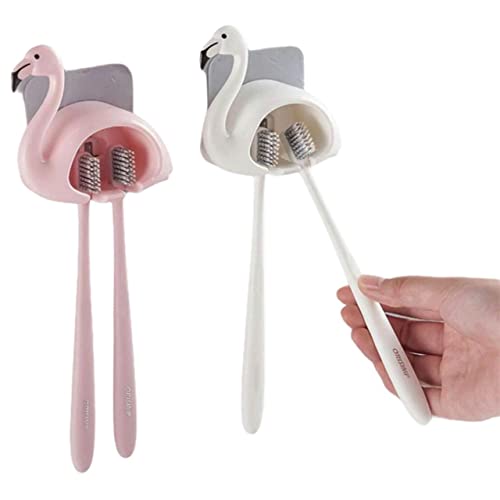 Spaceshoop - Plastic Flamingo Shaped Toothbrush Holder - White