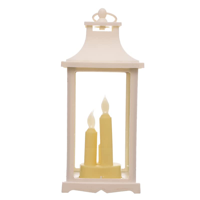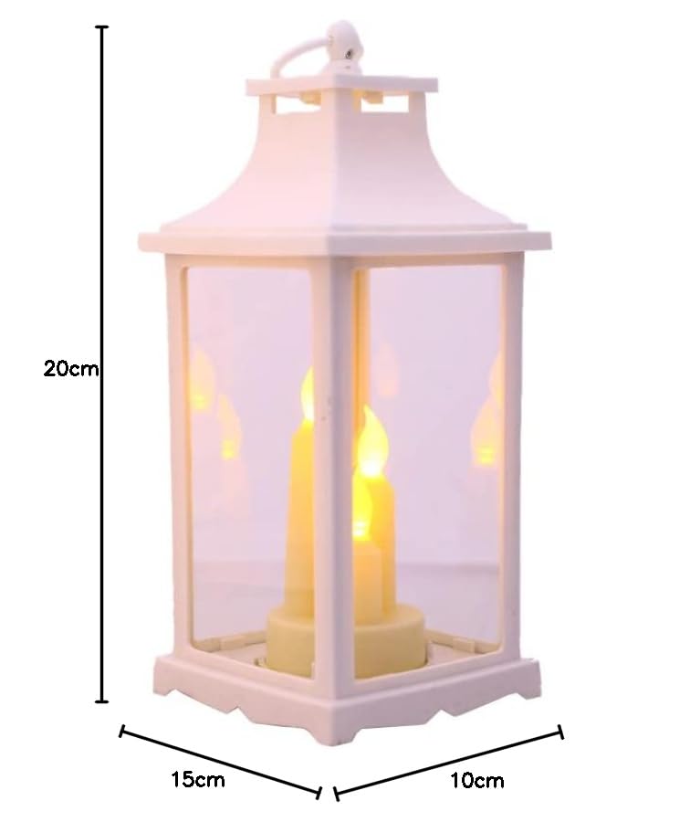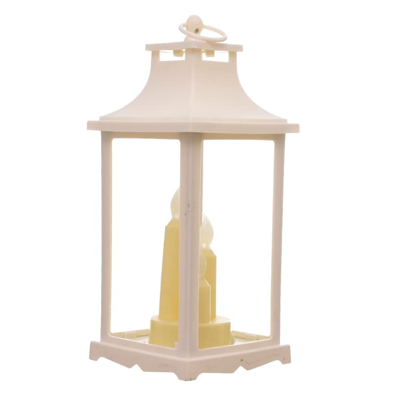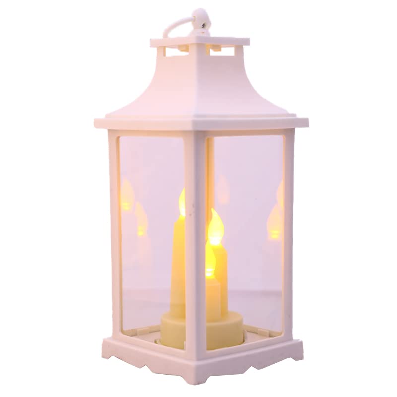 Generic - فانوس رمضان بلاستيك مع ثلاث شموع مضيئة بالداخل لتزيين الديكور - ابيض