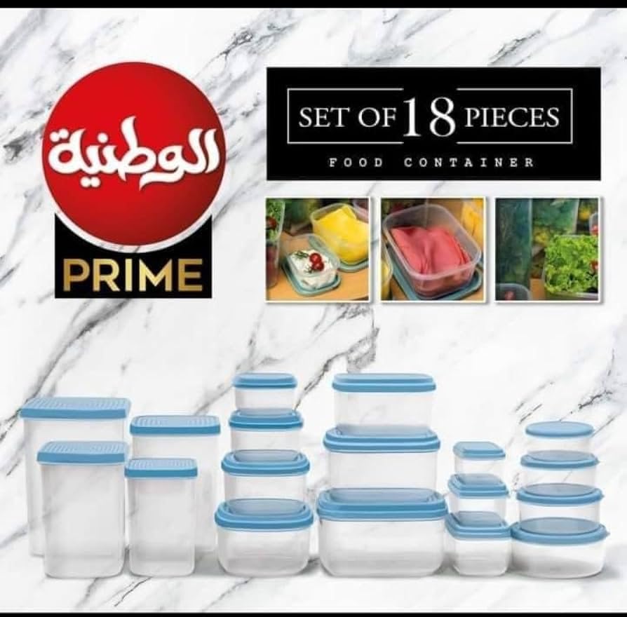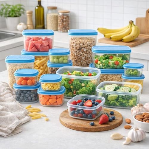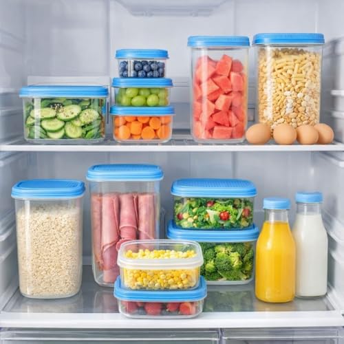 Generic - Plastic Refrigerator Storage Box Set with Blue Lids 18 Pieces, Multi Sizes, Clear, Airtight, Rectangular, Square, Round+