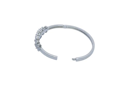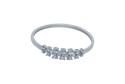 Generic - Platinum Hinged Statement Bangle with Clear & Opalescent Stones for Women - Silver