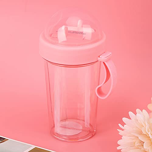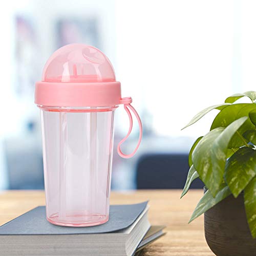 plplaaobo - dual use water bottleWater Bottle, Sport Drink Bottle Leakproof Dual Use With Two Straws, Wide Mouth Removable Strap Pink Water Bottle For Outdoor Travel Daily Use 420ml