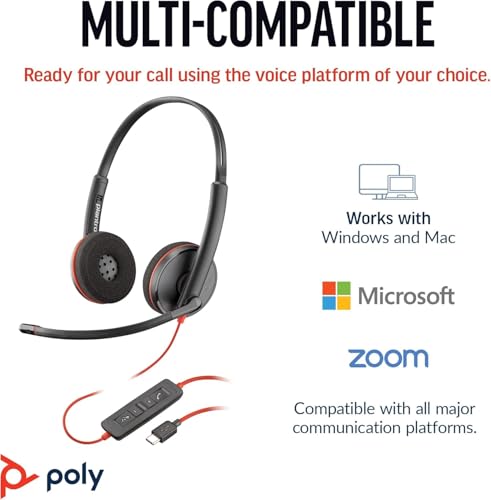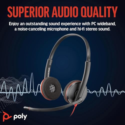 Generic - سماعة راس بلاك واير 3220 سلكية مزدوجة الاذن (ستيريو) مع ميكروفون بوم - USB-A للتوصيل بجهاز الكمبيوتر و/أو ماك من بولي