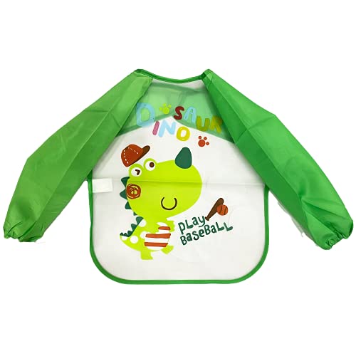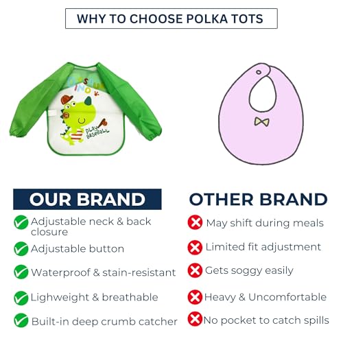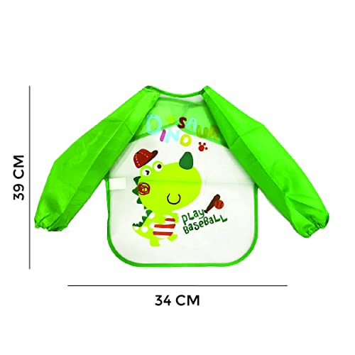 Polka Tots Full Sleeves Washable Waterproof Apron Feeding Bib for Babies (Baseball)