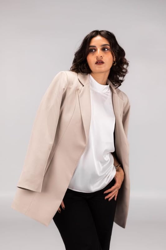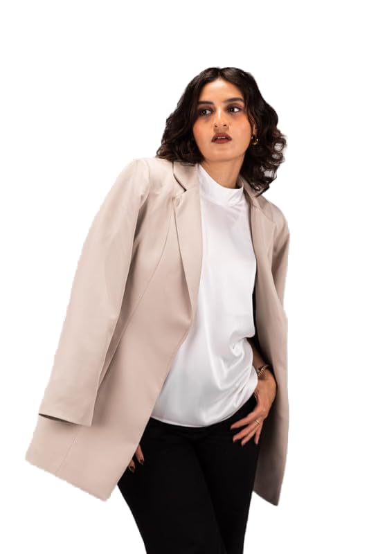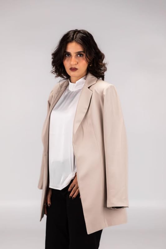 Pomme - جاكيت بليزر سادة مفتوح من الأمام بأكمام طويلة للنساء من بوم، لون بيج، US-101