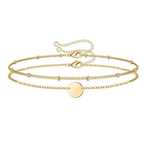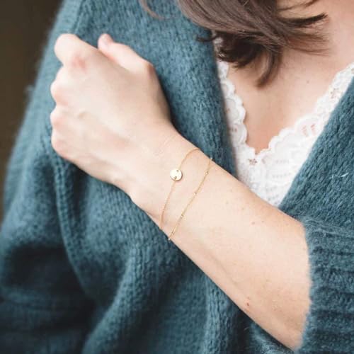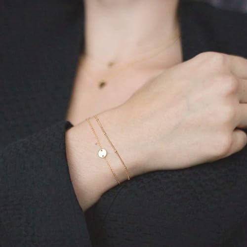 PopTopping - Dainty Gold Bracelet Stack, Trendy Layered Gold Bracelets For Women Non Tarnish, 14K Gold Filled Bracelet Set Valentine's Day Birthday Gift, Medium, Zinc, no gemstone