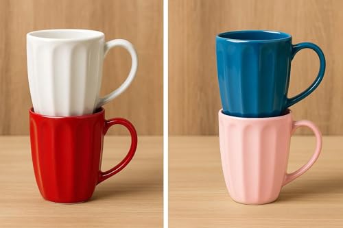 Generic - طقم أكواب بورسلين، 4 قطع، متعدد الألوان