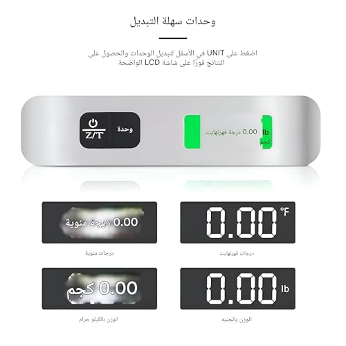 - تتميز هذه الميزان الرقمي للأمتعة بتصميمها الصغير ووزنها الخفيف وسهولة حملها، مما يجعلها رفيقًا مثاليًا للسفر. يسمح تصميمها بوضعها بسهولة في حقيبتك أو حقيبة اليد، مما يضمن لك توفرها في متناول يدك عند الحاجة إليها.