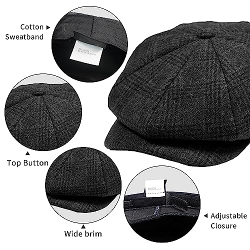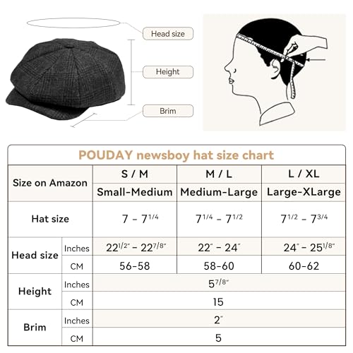 POUDAY - بوداي قبعة نيوزبوي للرجال والاولاد بتصميم بوسطن سكالي كاب ايرلندي نيوز سائق الاجرة مسطحة صيفية للاولاد حديثي الولادة رمادي منقوش XL
