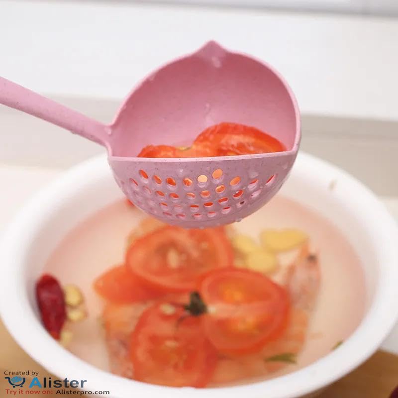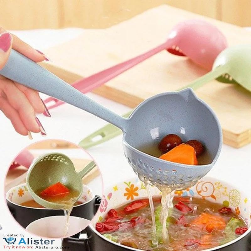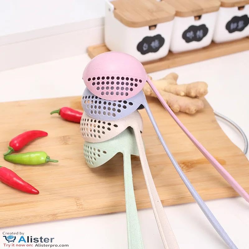 Generic - ملعقة قش القمح العملية: تصميم 2 في 1 بمقبض طويل للمغرفة والفلتر المثقوب, الان لدى 🥇 الاسراء (3)