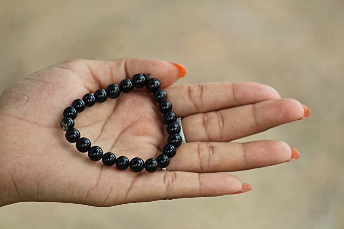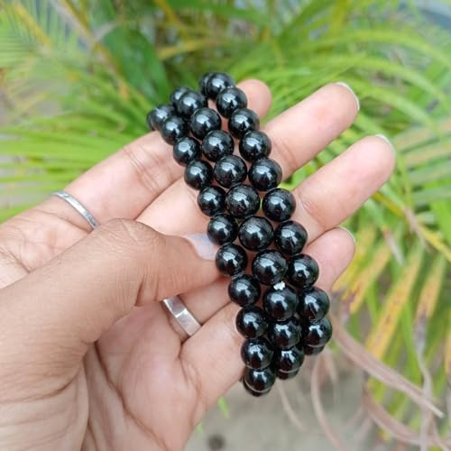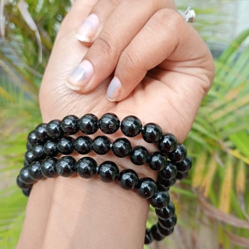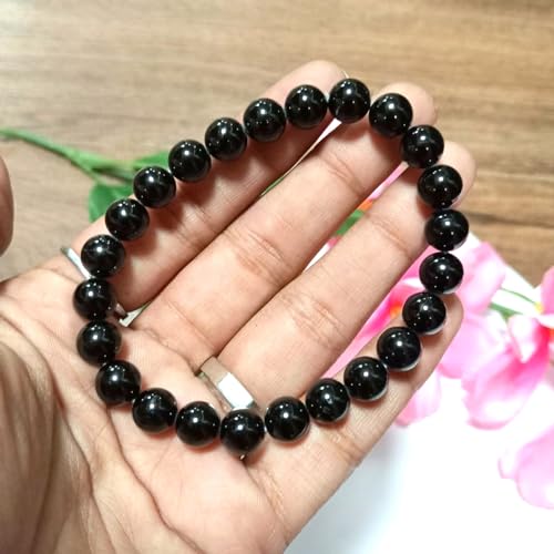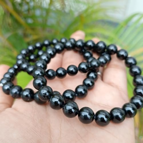 PRAJET CRYSTALS - سوار خرز من التورمالين الأسود الطبيعي 8 ملم – للعلاج وتخفيف التوتر والألم وتعزيز التوازن والبهجة والإلهام من براجيت كريستالز