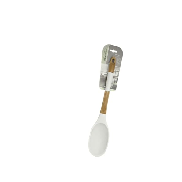 Generic - ملعقة طبخ من السيليكون والخشب الفاخر، ادوات مطبخ مقاومة للحرارة، خشب ابيض وطبيعي، سطح غير لاصق