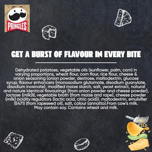 - GRAB-N-GO SNACKING: With their resealable lid and convenient canister packaging, Pringles Deli Selection- Cheese and Onion Flavour Savoury chips are perfect for grab-and-go snacking. Whether you're heading out for a picnic, a road trip, or just need a quick snack while you're on the go, these chips are a great choice.
