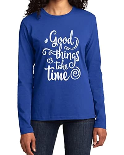 Generic - تيشيرت مطبوع عليه عبارة "GOOD THINGS TAKE TIME"، من جيني، قطن، ياقة ضيقة