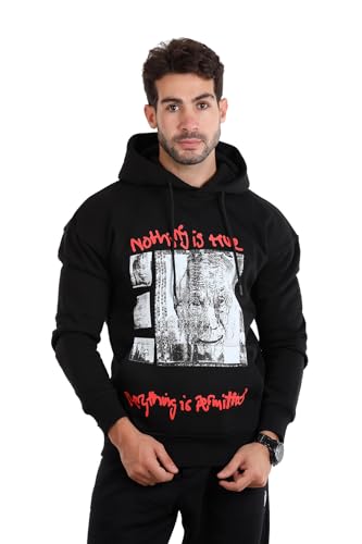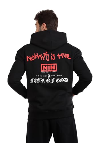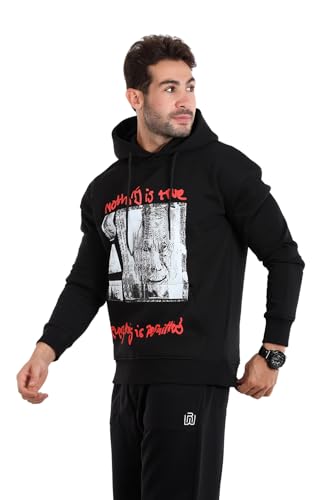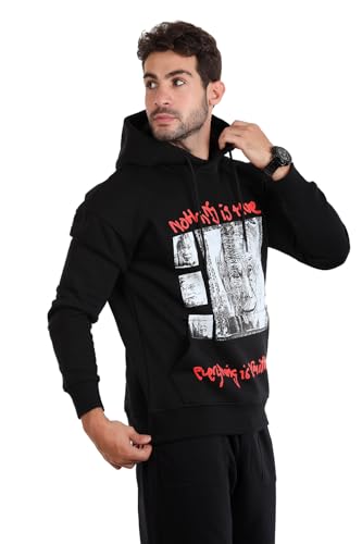 White Rabbit - سويت شيرت بغطاء للرأس مطبوع بجيوب متصلة - اسود