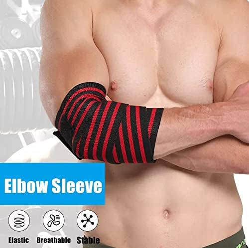 SportQ - أشرطة مرنة احترافية لدعم الكوع والركبة ورفع الأثقال واللياقة البدنية وكمال الأجسام (لون أحمر)