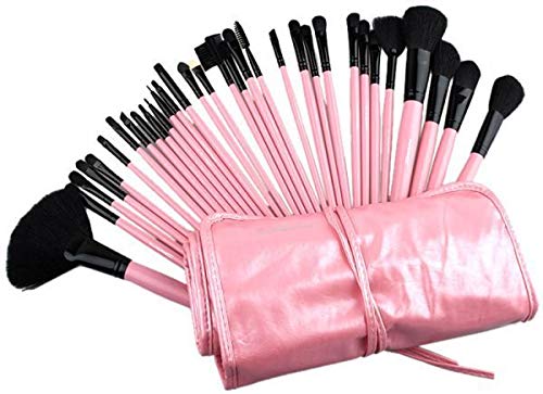 غير معروف - فراشي مكياج طقم مكون من 32 فرشاة مع حقيبة - زهري