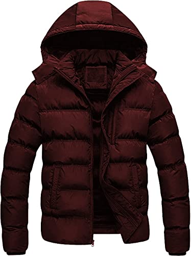 Generic - Puffer Jacket with Removable Hood For Men (Dark Red, M)