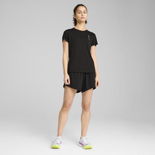 PUMA - تيشرت رن كلوب مطبوع عليه رسومات للنساء من بوما، أسود