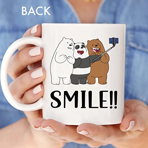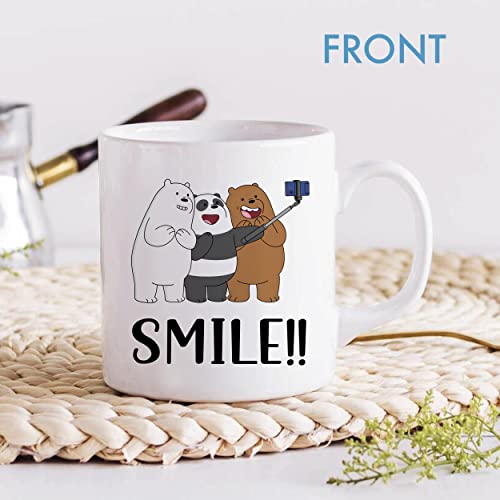 PureArtz - مج قهوة مطبوع عليه عبارة We Bare Bears Smile من بيور ارتز سيراميك أبيض