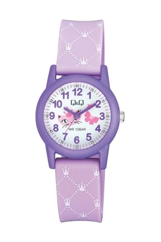 Q&Q - ساعة للاطفال من كيو اند موديل VR99J014Y انالوج بمينا أبيض بسوار أرجواني للبنات