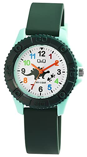 Q&Q SmileSolar - ساعة انالوج بعقارب وسوار راتنج للاولاد من كيو اند موديل VQ96J024Y بمينا أبيض